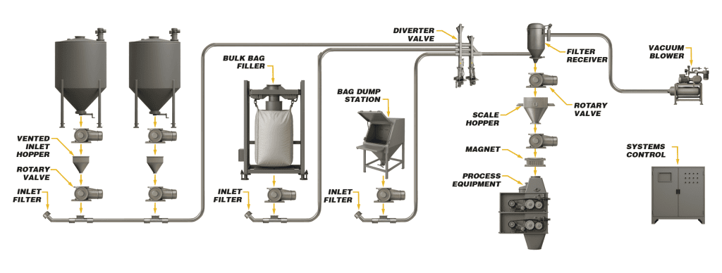 Even though Chain-Vey’s technology is flexible, versatile and ideal when possible, there are times where another technology might be a better fit. Process requirements such as high vertical distances, specific product characteristics, multiple direction changes or destination locations might make pneumatic conveying a better solution. If that is the case, we offer those solutions for our customers needs.