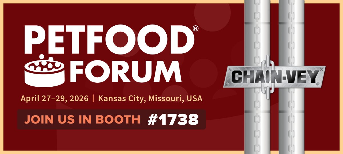 Chain-Vey is designed to move materials gently and predictably through a closed system. That matters in pet food, where maintaining product integrity—whether it’s fragile kibble or blended ingredients—is critical to both quality and yield.